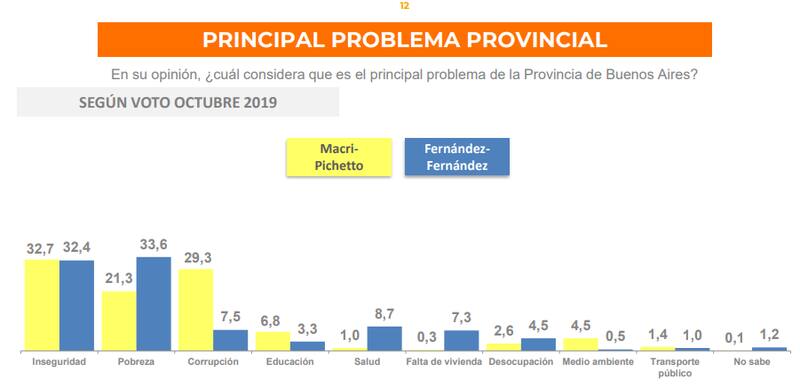 Mientras que, entre los votantes de la dupla Mauricio Macri - Miguel Ángel Pichetto, son muchos más los que se preocupan por la corrupción que los votantes del Frente de Todos. En cambio, la inseguridad preocupa a ambos sectores en proporciones muy similares.