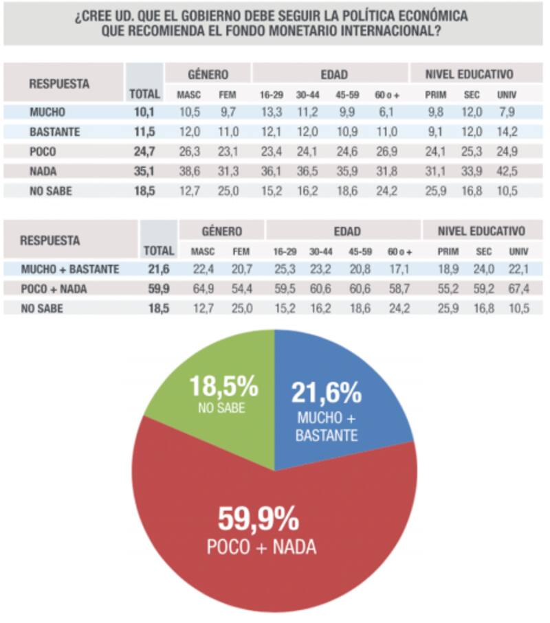 En esa línea, la consultora también indagó sobre la reputación del Fondo Monetario, cuyos postulados generan rechazo en la mayoría de los argentinos. Por eso, la gente se expresa en favor de reactivar la economía y luego afrontar los pagos, tal como postula la Casa Rosada.