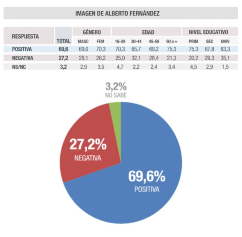 Una porción mayoritaria de la opinión pública sería favorable a la estrategia del Gobierno nacional de renegociar con el Fondo Monetario Internacional (FMI) el monto de la deuda contraída por la anterior administración, y a la vez aplazar los vencimientos vigentes para este año y el que viene. Al menos así lo refleja una encuesta nacional que le da un alto nivel de apoyo al presidente Alberto Fernández.