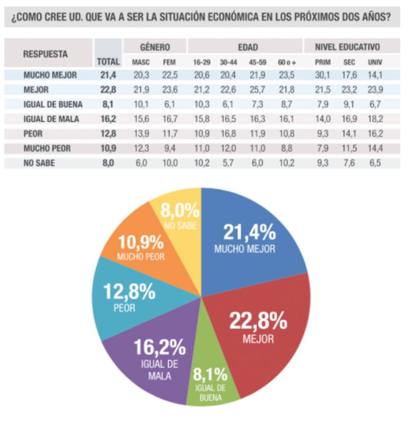 De acuerdo al estudio, los mismos sectores que tienen una imagen positiva del presidente apalancan expectativas favorables respecto al rumbo de la economía: el 52,3% espera un repunte de la actividad en los próximos dos años.