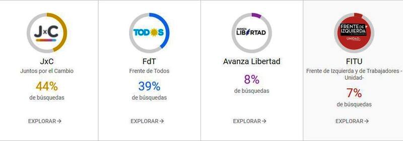 En la antesala de las elecciones presidenciales de ese año, las tendencias de Google ubicaban en primer lugar a Mauricio Macri como el candidato más buscado, con el 55%, muy por encima de su principal competidor, Alberto Fernández, que tenía una preferencia de búsqueda del 15%.