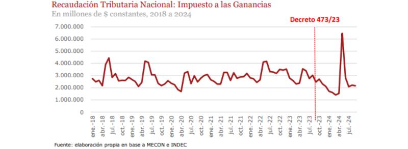 El mayor impacto, según el estudio, fue en la caída de la recaudación del Impuesto a las Ganancias, vinculado a las decisiones tomadas por el exministro de Economía Sergio Massa (Decreto 473/23 y Ley 27.725), que redujo los niveles de imposición para las personas físicas.
