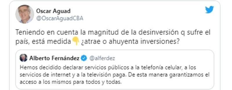 Oscar Aguad, ex ministro de Comunicación, se preguntó: “Teniendo en cuenta la magnitud de la desinversión que sufre el país, está medida ¿atrae o ahuyenta inversiones? .
