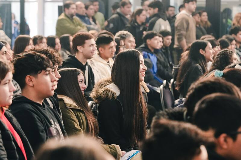 El acto cerró con un momento que resumió el espíritu de la jornada: los estudiantes se levantaron de sus asientos y comenzaron a saltar y aplaudir al ritmo del Pelao, que regresó al escenario para compartir música y humor.