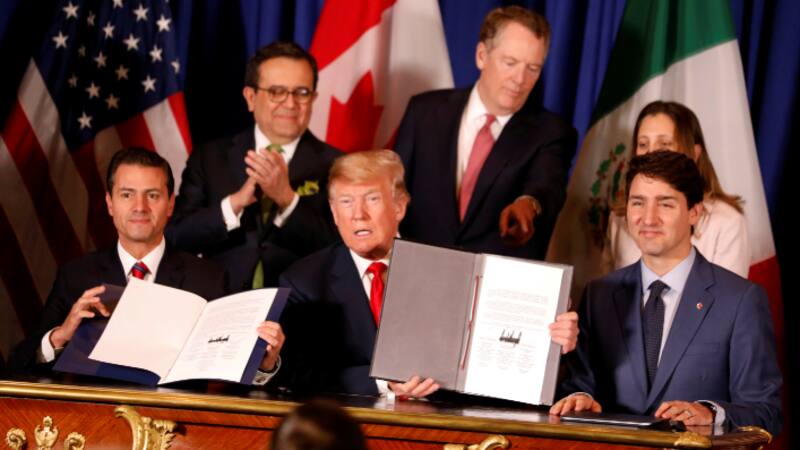 Donald Trump, Justin Trudeau y Enrique Peña Nieto firmaron esta mañana en Buenos Aires un nuevo tratado comercial para América del Norte. Llamado T-MEC, reemplaza al antiguo Tratado de Libre Comercio de América del Norte (TLCAN, o NAFTA por sus siglas en inglés), vigente desde 1994. Igualmente, deberá ser ratificado por los congresos de los tres países para su entrada en vigor.