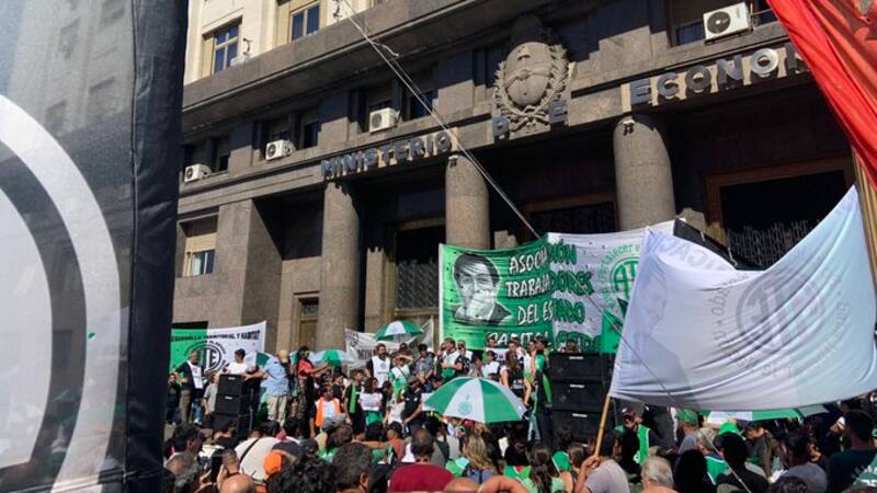 Mientras en el Ministerio de Economía se especulaba con la visita de Rodrigo Valdes, funcionario clave del Fondo Monetario Internacional (FMI) para el caso argentino, en las puertas del Palacio de Hacienda se llevaba a cabo una manifestación de la Asociación de Trabajadores del Estado (ATE).