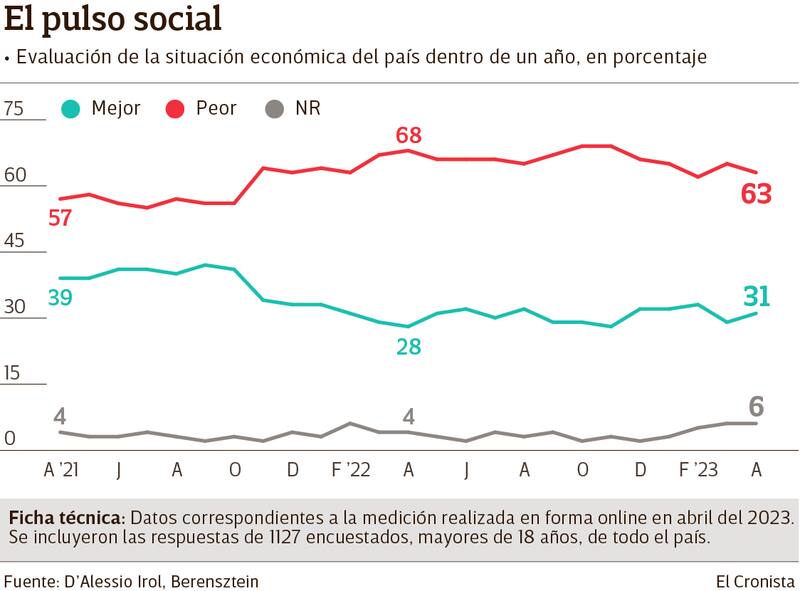 En el último sondeo, la expectativa sobre una mejora de la economía dentro de un año es uno de los pocos datos que exhibe una mejora. Es una visión que acompaña al 31% de los encuestados, entre ellos, 58% de oficialistas.