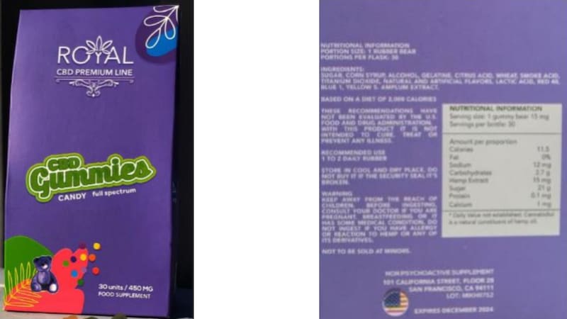 Las gomitas masticables que prohibió ANMAT desde fines de marzo son las Candy full spectrum CBD Gummies de la marca Royal CBD Premium Line.