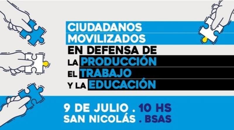 La convocatoria del reclamo indica: "Ciudadanos movilizados en defensa de la producción, el trabajo y la educación". Y agrega que será el 9 de julio a las 10 horas en San Nicolás.