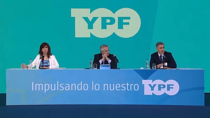 Minutos antes, la vicepresidenta Cristina Fernández del Kirchner se refirió a la participación de las provincias en el capital accionario de la petrolera durante el proceso de privatizaciones y a la búsqueda de llegar al 5% por parte de Néstor Kirchner a fines de los 90, lo que permitió ciertos grados de libertad.
