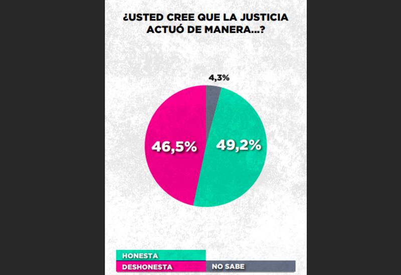 Sin embargo, otra porción similar (46,5%) desconfía de la justicia y cree que ésta actuó de manera deshonesta.