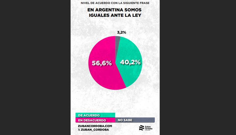 Mientras tanto, el 56,6% está en desacuerdo con la idea de que "en Argentina somos iguales ante la ley".