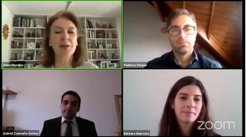 El panel sobre macroeconomía de la segunda jornada de la ExpoEFI 2020 fue moderado por la economista Diana Mondino y estuvo integrado por los analistas económicos Gabriel Caamaño, de Consultora Ledesma; Federico Furiase, de EcoGo, y Bárbara Gueretza, del estudio Arriazu.