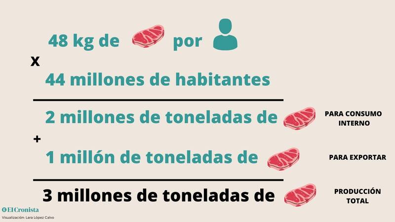 "El año que viene se puede garantizar que los argentinos coman 48 kilos de carne por 44 millones de argentino. Son un poquito más de 2 millones de toneladas y exportar 1 millón de toneladas. El año que viene tenemos una producción estimada de 3 millones de cabezas", detalló una fuente que participa de las negociaciones.
