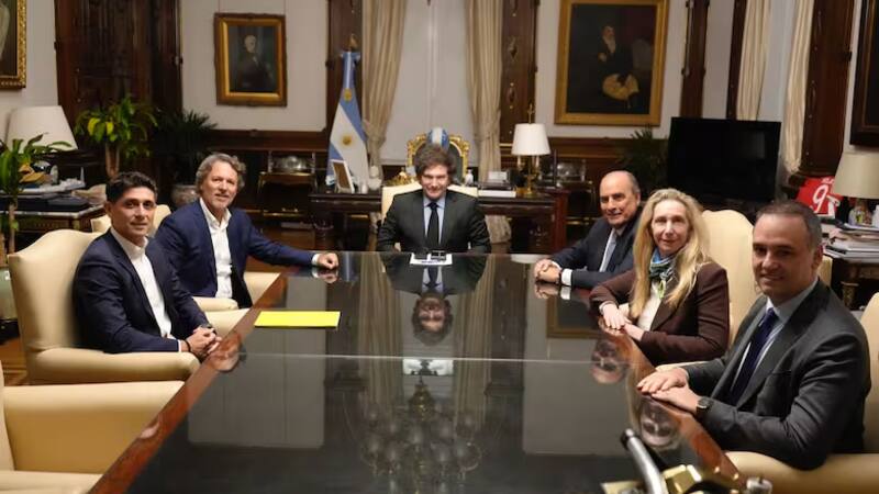 El mandatario estuvo en su despacho en Casa Rosada junto al presidente de Mercado Libre Argentina, Juan Martín de la Serna, y el vicepreidente senior de Asuntos Corporativos, Jacobo Cohen Imach. En la reunión lo acompañaron Karina Milei, el jefe de Gabinete, Guillermo Francos, y el vocero presidencial, Manuel Adorni.
