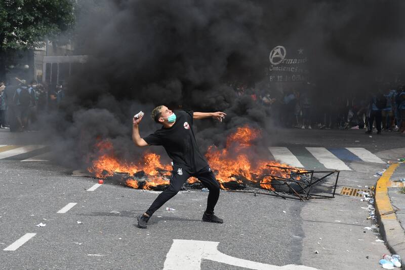 Agrupaciones de izquierda lanzaron piedras y rompieron parte de las instalaciones del Congreso, minutos después de haber iniciado el debate en la Cámara de Diputados por el acuerdo con el Fondo Monetario Internacional (FMI).