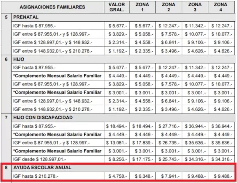 - Zona 3: ANSES pagará en marzo de 2022 de Ayuda Escolar un monto final de $ 9488 para los titulares de SUAF que vivan en la Zona 1;