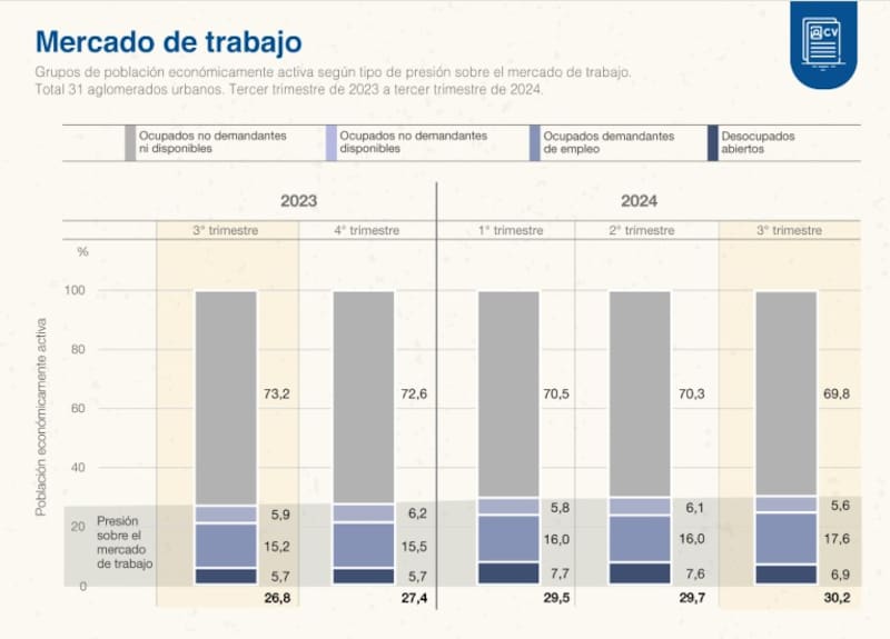 El Instituto Nacional de Estadística y Censos (INDEC) dio a conocer este miércoles el Índice de Desocupación del tercer trimestre de 2024, que presentó una fuerte baja y cayó al 6,9%, con un millón de personas buscando trabajo activamente.