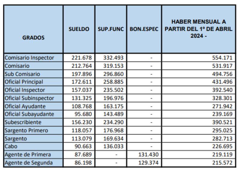 En su momento, junto a esta suba también se definieron nuevas escalas salariales para la Policía Federal, Gendarmería, Prefectura, la Policía de Seguridad Aeroportuaria, el Servicio Penitenciario y la Policía de Establecimientos Navales.