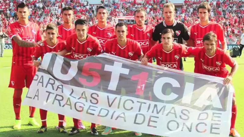 Familiares de las víctimas colgaron un video en donde se muestra cómo, al comienzo del partido que protagonizaron Independiente y Sarmiento de Junín el domingo pasado, quedaron fuera de la vista de los televidentes las imágenes en las que el plantel del rojo posa para los fotógrafos con un cartel que pide “Justicia para las víctimas de la tragedia de Once”.