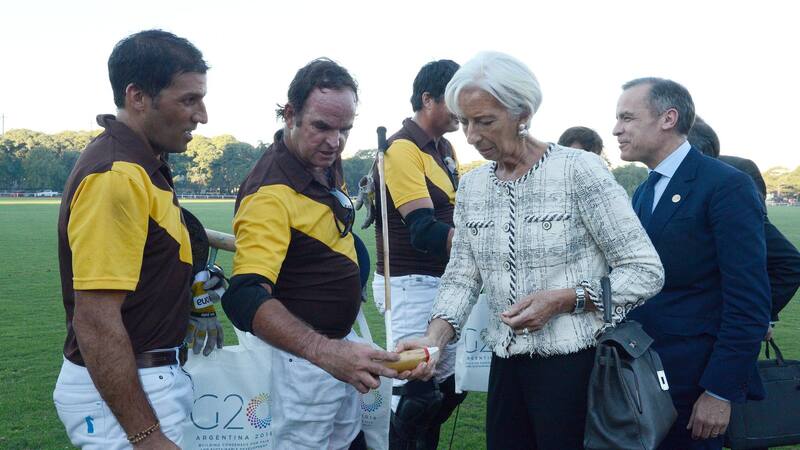 En una de las imágenes se puede ver a la directora del FMI, Christine Lagarde, probando con atención la contextura del taco que se usa para golpear la bocha en el Polo. En otra, al presidente del Banco Central, Federico Sturzenegger, escudriña con atención y deleite, un humeante chorizo. Estas son algunas de las postales que ilustran la jornada de relax que protagonizaron los titulares de carteras de Finanzas, presidentes de bancos centrales y jefes de organismos multilaterales que, en el marco de una nueva cumbre ministerial del G20, se dirigieron al mediodía al Centro de Convenciones de la Ciudad para entrarle a un asado y algunas otras exquisiteces con las que distenderse luego de tanto análisis sobre bonos, deudas, geopolítica financiera y demás.