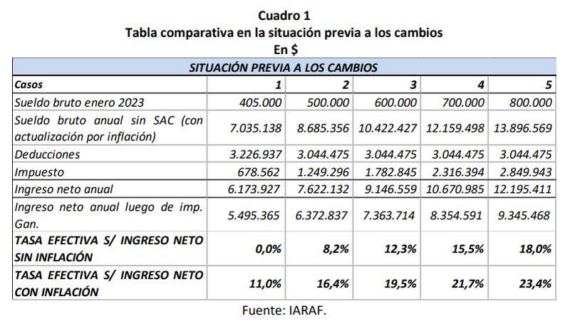 En todos los casos la tasa efectiva estimada para 2023 como consecuencia de los aumentos nominales de salarios para intentar compensar la inflación, conjuntamente con falta de ajustes de los parámetros de liquidación hubiera llevado a la incorporación de muchos trabajadores al impuesto y a incrementos notables de la alícuota efectiva a aquéllos que ya lo estaban.