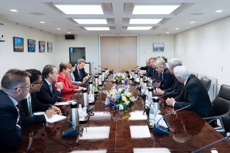 Durante la reunión, de la que también participaron el viceministro José Luis Daza, el secretario de Finanzas, Pablo Quirno, el presidente y vicepresidente del BCRA, Santiago Bausili y Vladimir Werning y el representante argentino ante el FMI, Leonardo Madcur, compartieron la visión sobre la positiva reacción del mercado a la implementación del nuevo programa.