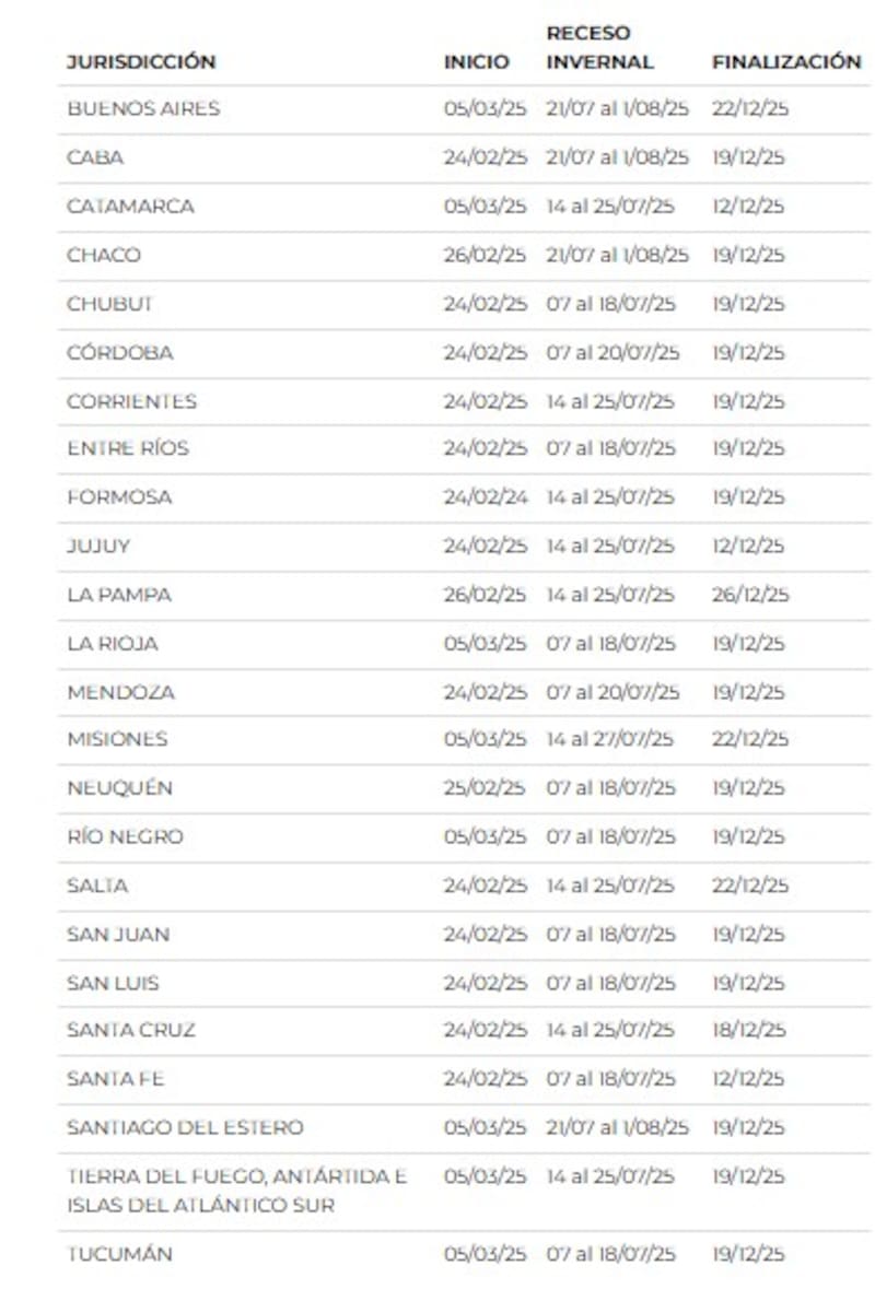 Otras tres provincias iniciarán en los días siguientes: Neuquén, el martes 25 y Chaco y La Pampa, el miércoles 26. Y el resto del país tiene programado el primer día del calendario escolar recién el miércoles 5 de marzo.