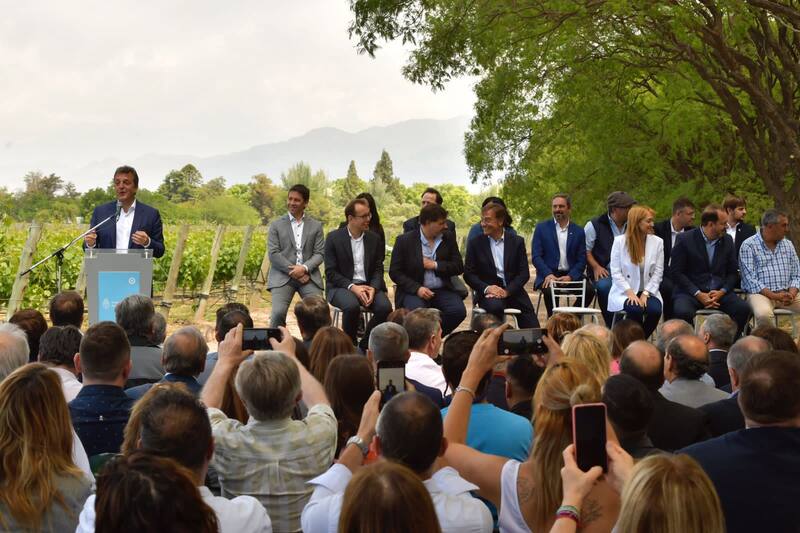 Cuando el gobernador y el ministro llegaron ya los esperaba la senadora Anabel Fernández Sagasti, vicepresidenta del interbloque del Frente de Todos, y una de las más duras contra Juntos por el Cambio en el Congreso; el titular del Instituto Nacional del Vino, Martín Hinojosa, y ministros de varias de las provincias expectantes por la ayuda del Estado nacional. Un dirigente local cercano a Massa dijo: "Hacía 50 años que no venía un ministro de Economía para ponerse del lado de los productores".