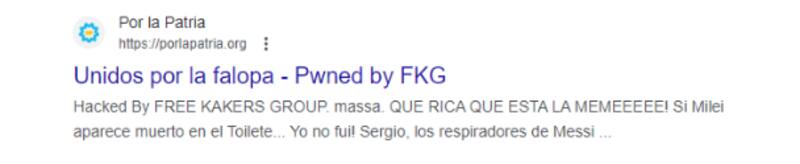 "Hacked By FREE KAKERS GROUP" es el mensaje que aparecía al buscar hoy la página de UP en Google. Además se había cambiado el título a "Unidos por la falopa" en la información que provee el buscador sobre este sitio.