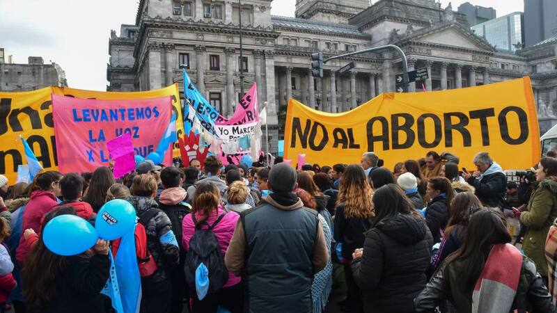 En medio de una fuerte expectativa, manifestantes a favor y en contra del proyecto que despenaliza el aborto se concentraron hoy en las inmediaciones del Congreso para respaldar sus posturas y se preparaban para una vigilia durante toda la noche, a la espera del desenlace en la votación.