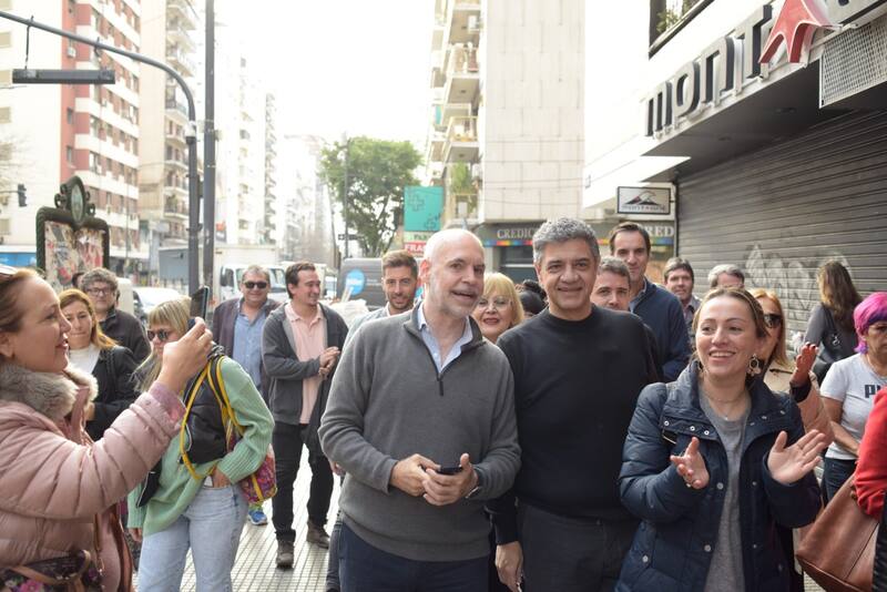 El precandidato a presidente de Juntos por el Cambio, Horacio Rodríguez Larreta y el candidato a jefe de Gobierno porteño por el PRO, Jorge Macri, compartieron una recorrida por el barrio de Caballito, donde escucharon y charlaron con vecinos y comerciantes para intercambiar ideas sobre el futuro de la Ciudad.