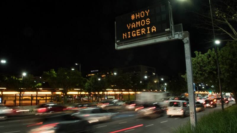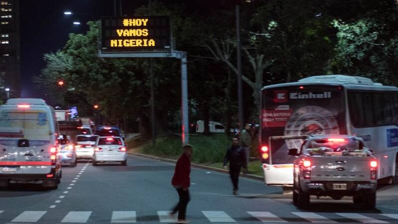 #HoyVamosNigeria, los carteles lumínicos de tránsito amanecieron hoy con esa insólita leyenda. Es que un triunfo de los africanos le da al equipo argentino chances para pasar a octavos de final en Rusia 2018.