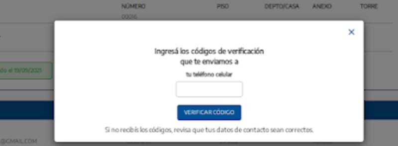 Luego se deberá confirmar la cuenta de correo electrónico (e-mail) y el número de teléfono celular. En el caso de que se haya agregado un número de teléfono FIJO, NO se solicita la verificación.