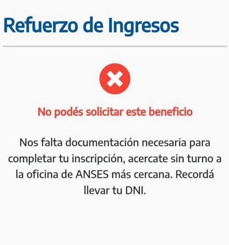 A través de leyendas que se emiten en la plataforma Mi ANSES o desde aplicativo oficial, el organismo conducido por Fernanda Raverta ya informa la inhabilitación por "falta de documentación necesaria" o bien por "no cumplir con las condiciones socioeconómicas".