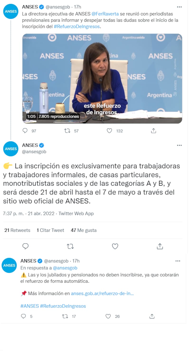 ANSES señaló desde su cuenta de Twitter quiénes tienen que completar el formulario de inscripción de manera "exclusiva" para cobrar el bono IFE 4 2022 de $ 18.000.