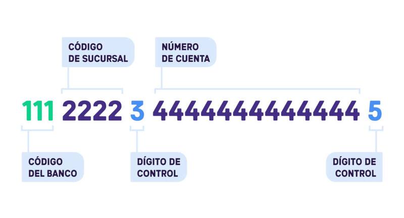 La Clave Bancaria Uniforme (CBU)está conformada por 22 números que a su vez pueden dividirse en 5 apartados:
