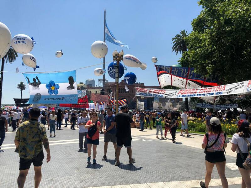 Una plaza llena y colorida celebraba este martes el traspaso de Gobierno del saliente presidente Mauricio Macri al flamante jefe de Estado Alberto Fernández.
