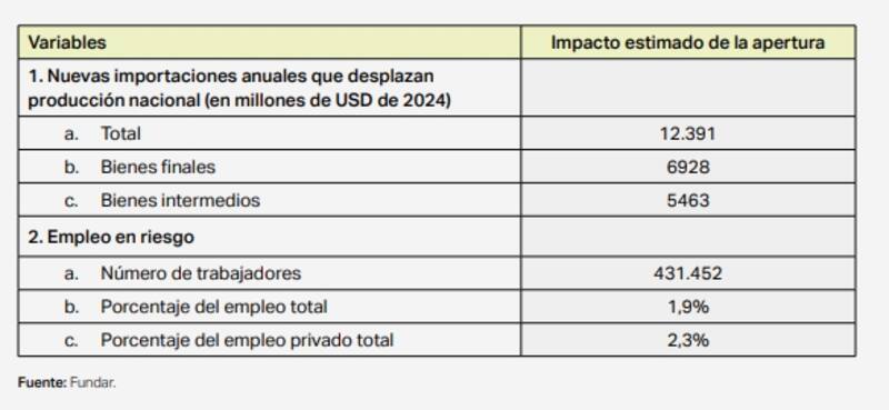 La simulación proyecta un aumento de u$s12.391 millones anuales (a precios de 2024) en importaciones que podrían desplazar producción nacional.