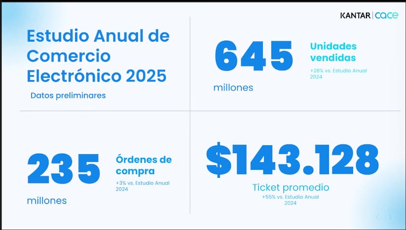 Con una facturación total de 35,3 billones de pesos (equivalentes a unos 22.000 millones de dólares), el canal online registró un salto nominal que, ajustado por una inflación del 31% para el periodo analizado, arroja un crecimiento neto del 29%.