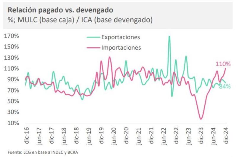 Asimismo, los importadores habrían optado por seguir difiriendo pagos para aprovechar el rendimiento positivo de las tasas en pesos, que corrieron por encima del crawling mensual, así como del movimiento de los dólares financieros, en gran parte del año.