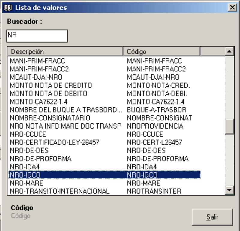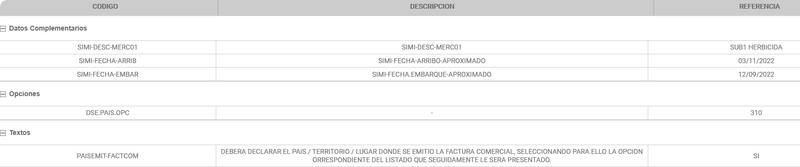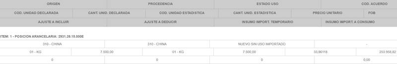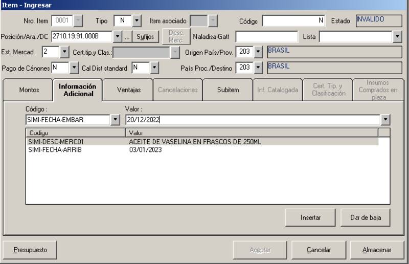 Los datos solicitados por el sistema en dichos campos serán: "Código", "Naladisa-Gatt", "Lista", "Ajuste a incluir en div." y "Ajuste a deducir en div.", los mismos son de carácter FACULTATIVO a los fines del declarante. De corresponder se deberá ingresa la información a nivel subítem.