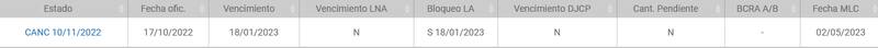 Cliqueando sobre el botón +(signo más) se despliega un mayor detalle de información sobre LNA o DJCP.