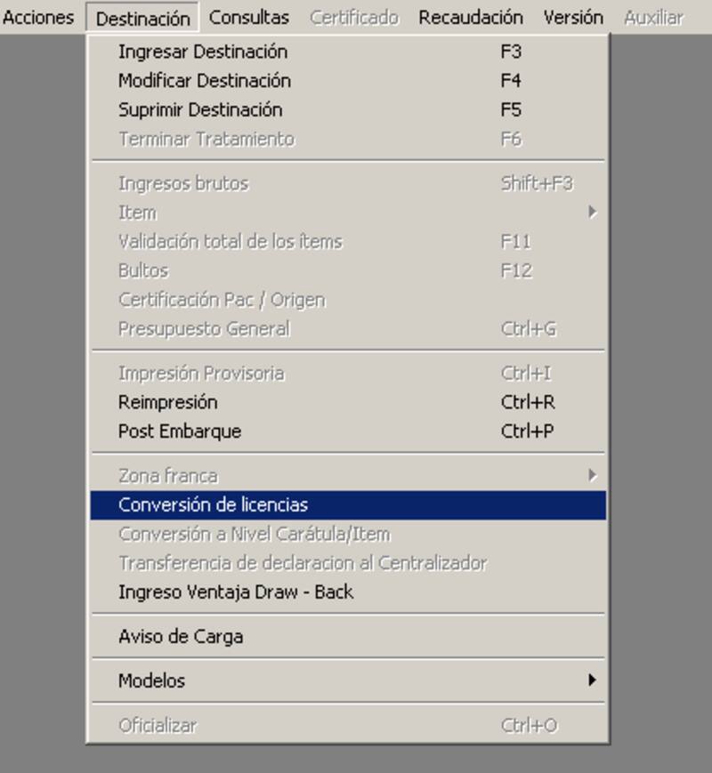 Una vez convertido en despacho se procederá a seleccionar la destinación convertida para proceder a su modificación de la misma manera que con cualquier destinación de importación, ajustando las correspondientes cantidades para el o los ítems.
