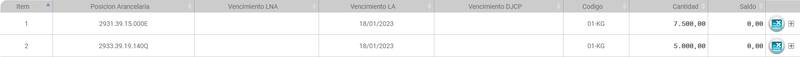Al cliquear sobre la declaración se visualiza la información correspondiente a ítem, y los saldos.