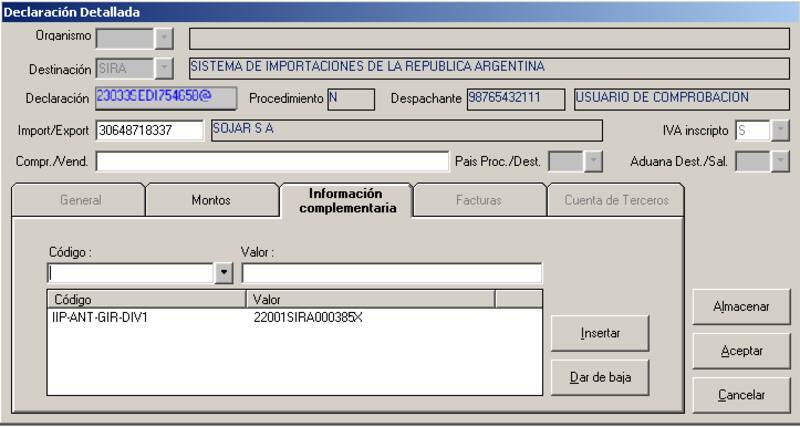 El declarante en la solapa "Información Adicional", a nivel ítem, tendrá que comprometer obligatoriamente como "Dato Adicional" la fecha de embarque aproximado, y de arribo aproximado, así como la descripción del producto, y todo otro dato que los terceros organismos requieran.