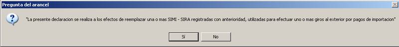 Al presupuestar, el sistema le consultará si la presente declaración se realiza a los efectos de reemplazar una o más SIRA-SEDI registradas con anterioridad, utilizadas para efectuar uno o más giros de divisas al exterior por pago de importaciones: