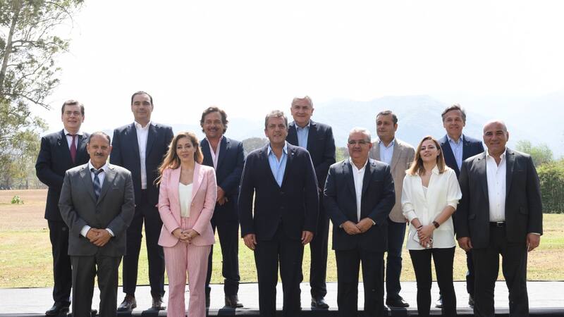 El ministro y candidato a Presidente Sergio Massa tuvo su foto de "unidad nacional" con nueve gobernadores del Norte Grande de la Argentina este domingo en Salta. Peronistas y radicales firmaron acuerdos de energías renovables y abastecimiento de gas natural con la Nación, y presentaron una propuesta sobre la coparticipación de impuestos, después de la devolución de IVA y la suba de Ganancias.