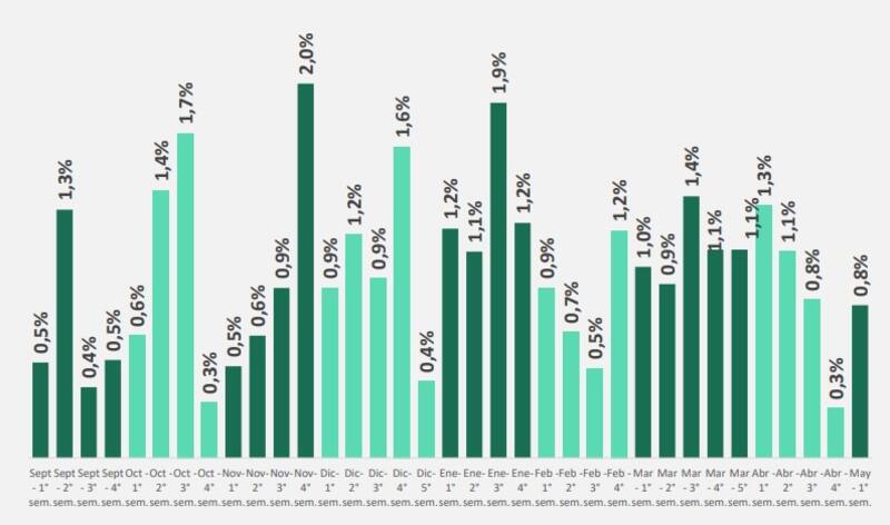 Se trata de un incremento de 0,54 puntos porcentuales en relación al aumento observado en la última semana de abril.