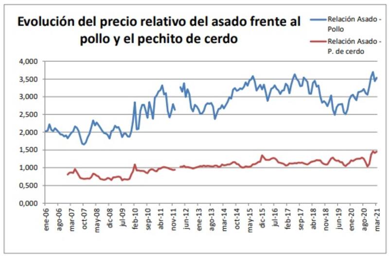 Es un guarismo muy superior al que tuvieron el pollo (0,7%) y el pechito de cerdo, tomado como referencia de los cortes porcinos, que se incrementó en el mes 0,9%.